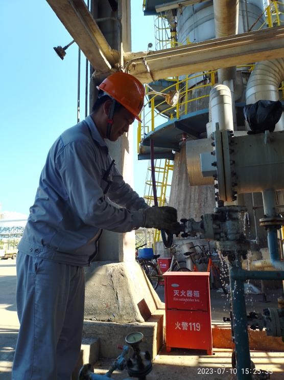鉗工班人員揮汗如雨,更換閥門、拆法蘭、加盲板等作業(yè)。